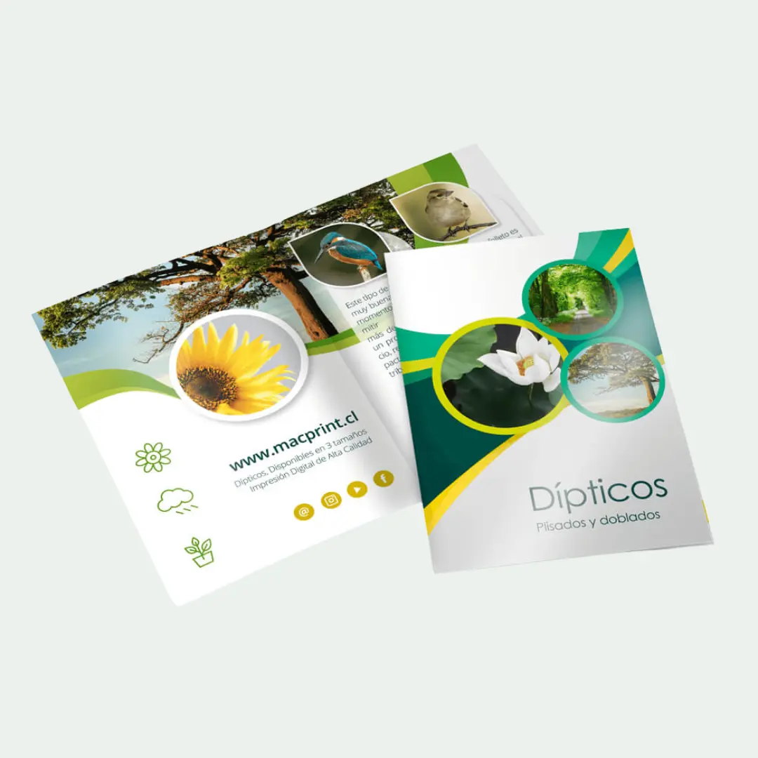 Los dípticos son una excelente opción para presentar información concisa y atractiva sobre temas específicos, como guías de productos, menús de restaurantes o programas de eventos.